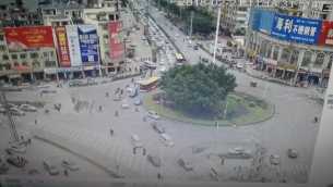 今天中午龙圩大转盘车辆缓慢通行。